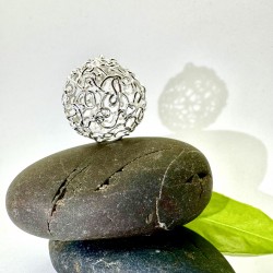 • Kugel: 999 Feinsilber – aus recyceltem Art Clay Silber von Hand aufgebaut. Wählbar in 20, 15 oder 11 mm. Hohl gearbeitet, daher angenehm leicht.