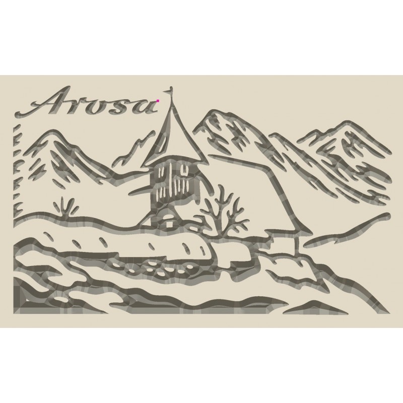 3D Schneidebrett Arosa Bergkirchli geschnitzt Bergahorn 240x150x11mm.