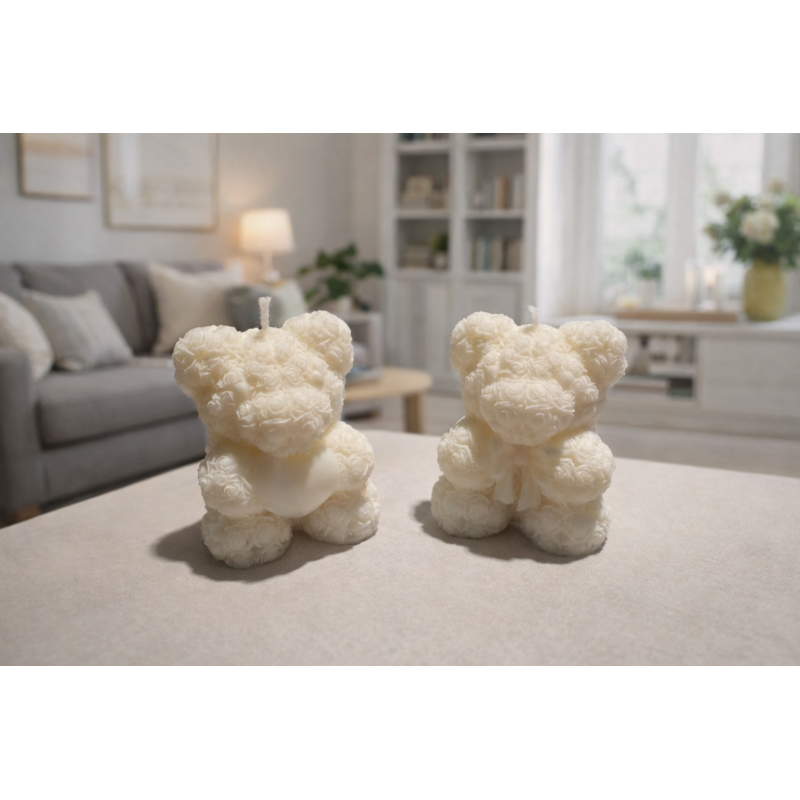 Unsere dekorativen Bärenkerzen werden von Hand aus 100 % natürlichem Sojawachs gefertigt. Jede Kerze ist ein kleines Kunstwerk mit feinen Rosen-Details und wird mit viel Sorgfalt gegossen. Ideal als Deko, Geschenk oder für gemütliche Stunden. Höhe: 6.0 cm Breite: 4.9 cm ✨ Produktdetails • Material: 100 % Sojawachs • Handgegossen & vegan • Dekorative Bärenform mit Rosenstruktur • Ideal als Geschenk (Valentinstag, Geburtstag, Weihnachten, Hochzeit) ???? Einzelstücke – jede Kerze ein Unikat Da jede Kerze per Hand gegossen wird, ist jede Kerze ein Einzelstück. ???? Leichte Farbabweichungen sind möglich und machen jede Kerze einzigartig. ⏳ Lieferzeit • Lieferzeit: ca. 5 Tage • Die Kerzen werden erst nach Bestelleingang gegossen, um höchste Qualität zu gewährleisten. ⚠️ Sicherheitshinweise für Kerzen • Kerzen niemals unbeaufsichtigt brennen lassen • Von Kindern und Haustieren fernhalten • Auf eine hitzebeständige, ebene Unterlage stellen • Nicht in Zugluft platzieren • Docht vor jedem Anzünden auf ca. 0,5–1 cm kürzen • Brennende Kerzen nicht bewegen • Mindestabstand zu anderen Kerzen einhalten ???? Hinweis Durch die besondere Form eignet sich diese Kerze auch hervorragend als Dekorationsobjekt. Beim Abbrennen kann das Wachs ungleichmäßig verlaufen – bitte stets eine geeignete Unterlage verwenden.