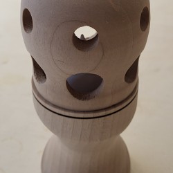Bougeoir en bois de tilleul et érable, tourné rond, couvercle emboîté, pour une bougie en forme de lampe LED 40mm de diamètre. Dimensions: diamétre 65, 75 et 90mm pour une hauteur de 160, 170 et 250mm