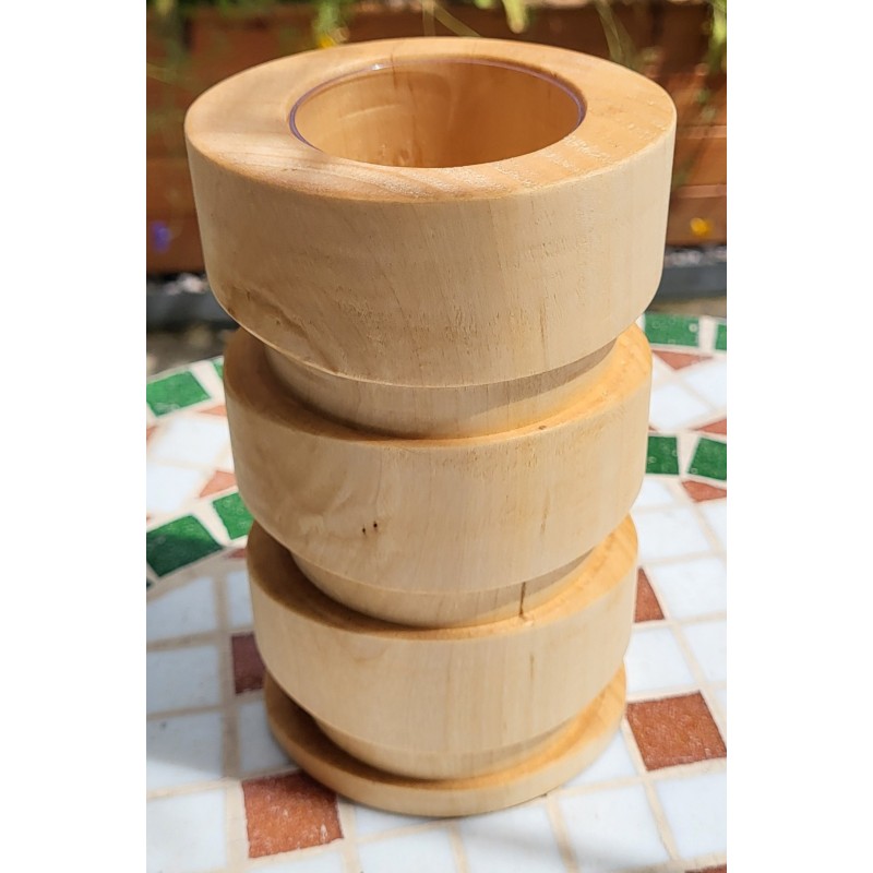 Vase ovale tourné en bois d´érable, avec à l´intérieur un verre en polycarbonate. Diemsions : Extérieur ovale 85/95mm hauteur 170. Intérieur : diamétre 60mm, profondeur 155mm