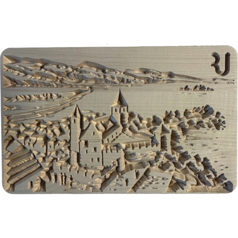 3D Schneidebrett Schloss Rapperswil dreidimensional bis 6 mm vertieft. Bergahorn