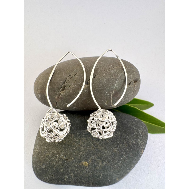 Diese filigranen Kugel-Ohrhänger wirken leicht, schwebend und wunderbar zart – handgefertigt in meinem Atelier in der Schweiz aus recyceltem Feinsilber. Jedes Paar entsteht in liebevoller Handarbeit und trägt die Seele echter Unikate. Das offene, verschlungene Design erinnert an ein feines Geflecht aus Licht – strahlend, lebendig und voller Ausdruck. Trotz ihrer Größe bleiben die Ohrringe federleicht und lassen das Ohr entspannt und frei wirken. ✨ Materialien: • Kugel: 999 Feinsilber – aus recyceltem Art Clay Silber von Hand aufgebaut. Wählbar in 20, 15 oder 11 mm. Hohl gearbeitet, daher angenehm leicht. • Haken: 925 Sterlingsilber – hautfreundlich, stabil und ideal für den täglichen Gebrauch. ????Design & Qualität: Die strukturierte Oberfläche jeder Kugel entsteht durch die individuelle Modellierung – jedes Stück ein kleines Kunstwerk. Die schlichten, eleganten Ohrhaken setzen einen harmonischen Akzent und runden das Design edel ab. Jede Bestellung wird einzeln gefertigt und geprägt mit dem offiziellen Schweizer Herstellermarkenzeichen sowie der 925-Prägung – ein Zeichen für Echtheit und dauerhafte Qualität. ❤️Handgemacht mit Herz: Mit einer feinen Silberspritze forme ich jede Kugel Schicht für Schicht frei von Hand. So entsteht das luftige, organische Geflecht. Nach dem Trocknen werden die Formen präzise veredelt und im Hochtemperaturofen gebrannt – übrig bleibt reinstes, glänzendes Feinsilber mit faszinierender Struktur. Verkauft als Paar. Passende Anhänger und Ohrstecker findest du ebenfalls in meinem Shop.