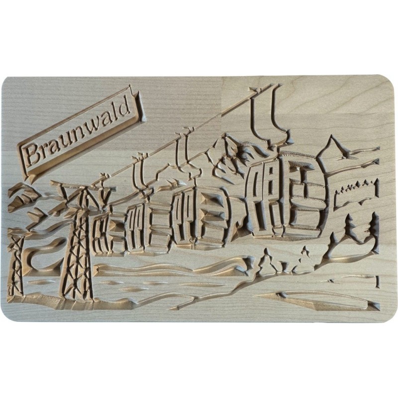 Wanderbrett Gondel (Braunwald) geschnitztes Bild auf Bergahorn 24 x 15 cm