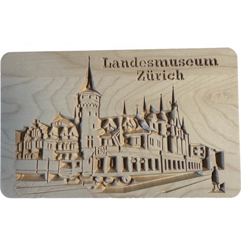 3D Schneidebrett mit Kunstwerk Landesmuseum Zürich geschnitzt Bergahorn 240x150x11mm oder weitere Sujets. Dieses dekorative Ahornbrett (24 x 15 cm) mit einem Kerbschnitt macht sich gut auf jedem Küchentisch.