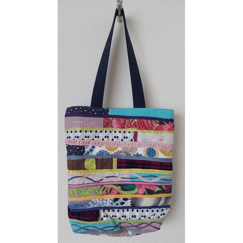 Tasche aus verschiedenen Stoffen von Hand hergestellt. Einzelstuck.