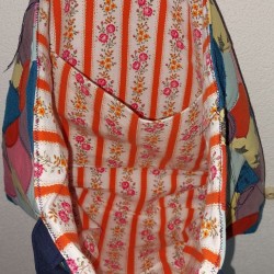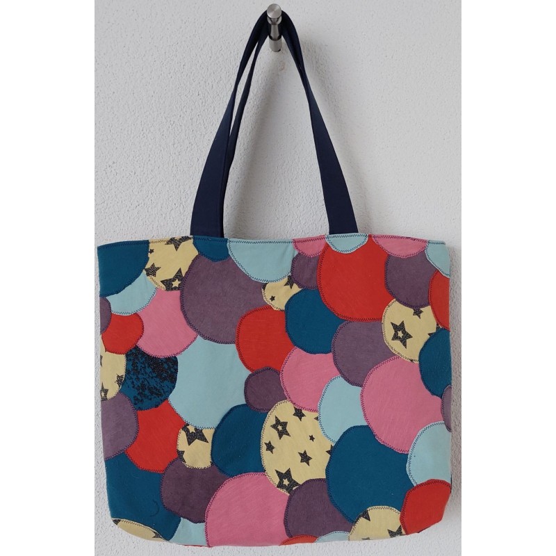 Aus gebrauchten, aber gut erhaltenen T-Shirts. Innenfutter Baumwollstoff. 1 Innenfach. Grösse: Breite ca. 43 cm, Höhe ca. 33 cm.