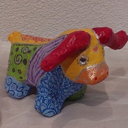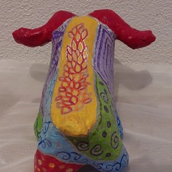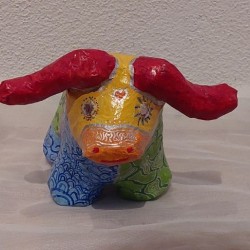aus Pappmaché, angemalt mit Acryl, lackiert, für den Innenbereich. Einzelstück.