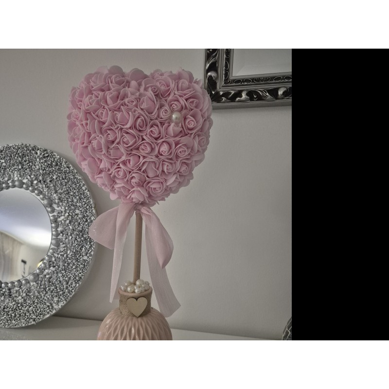Cuore con teste di rose artificiali in vasetto