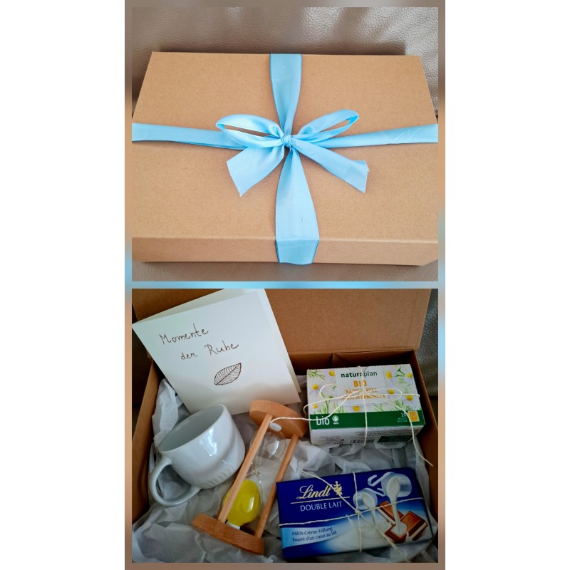 Diese Geschenkbox wurde mit viel Liebe zusammengestellt – für einen Moment zum Innehalten. Inhalt: – Tasse – Bio-Kamillentee – Schokolade – Sanduhr – handgeschriebene Karte Eine kleine Pause – für dich oder für jemanden, der sie gerade braucht.