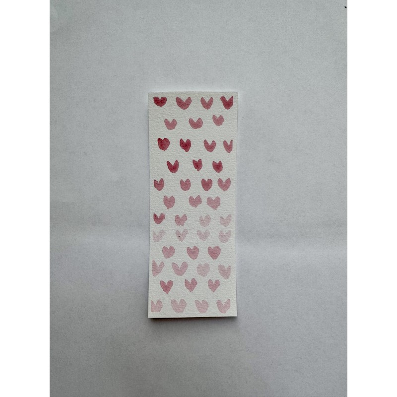 Marque page peint à l’aquarelle avec des petits cœurs. Idéal comme cadeau pour vos chers lecteurs ou chères lectrices de romance.