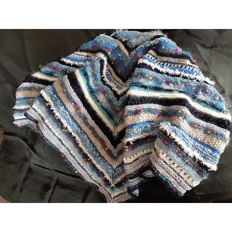 Handgestricktes Dreiecktuch in Blautönen