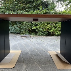 Der moderne Esstisch wurde von einem Schreiner aus regionalem Holz (Region Luzern) gefertigt. Abmessungen in mm: 1600 x 840 x 760. Stärke Tischplatte: 40 mm. Oberflächenbehandlung: geölt. Die massive Tischplatte wird getragen von zwei pulverbeschichteten (Ral. 9005 tiefschwarz, matt glatt) Stahlwangen, welche ebenso von einem Metallbauunternehmen aus der Region Luzern gefertigt wurden. Der Esstisch kann in 5044 Schlossrued besichtigt werden (kh.hunziker@bluewin.ch). Eine Lieferung wäre nach Absprache möglich (gegen Aufpreis).