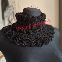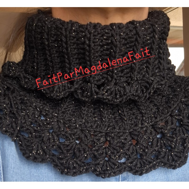 Magnifique col en laine, taille unique pour femme. Idéal pour les journées froides d'hiver, ce col vous tiendra chaud avec élégance. Tricoté à la main, il est agréable à porter et ne gratte pas. Parfait état, jamais porté. Lavage dans la machine - délicat.